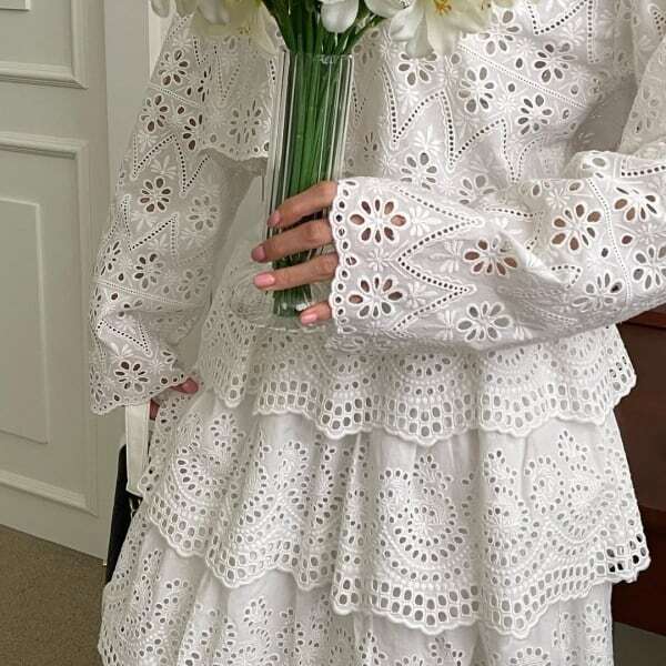 【セットアップ】スカラップ レース カットソー & ティアード マキシ スカート ★1732★