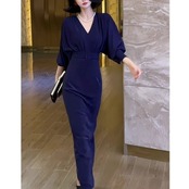 Vネック パフスリーブ ロング ワンピース ★1834★