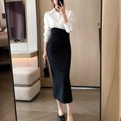 ハイウエスト 切り替え ドッキング ワンピース ★1851★