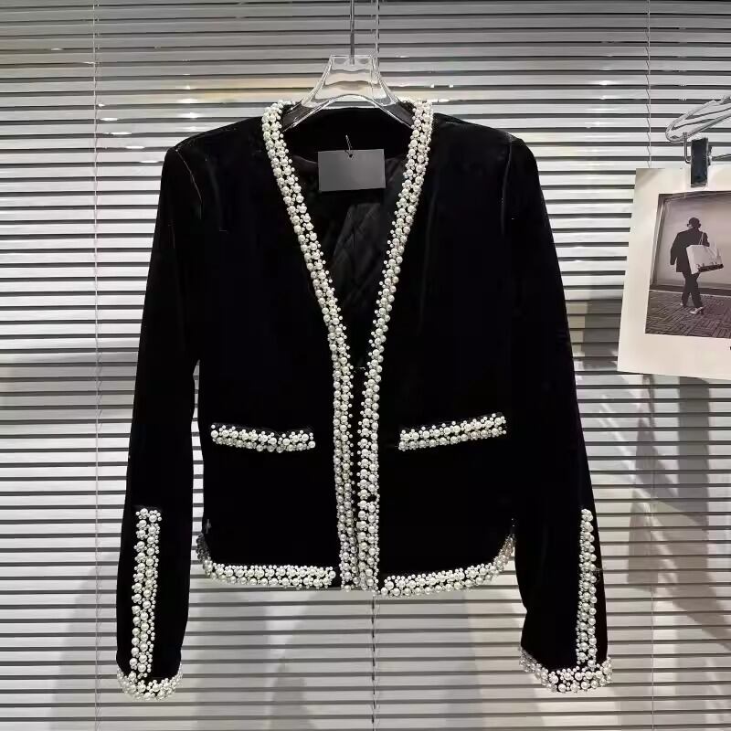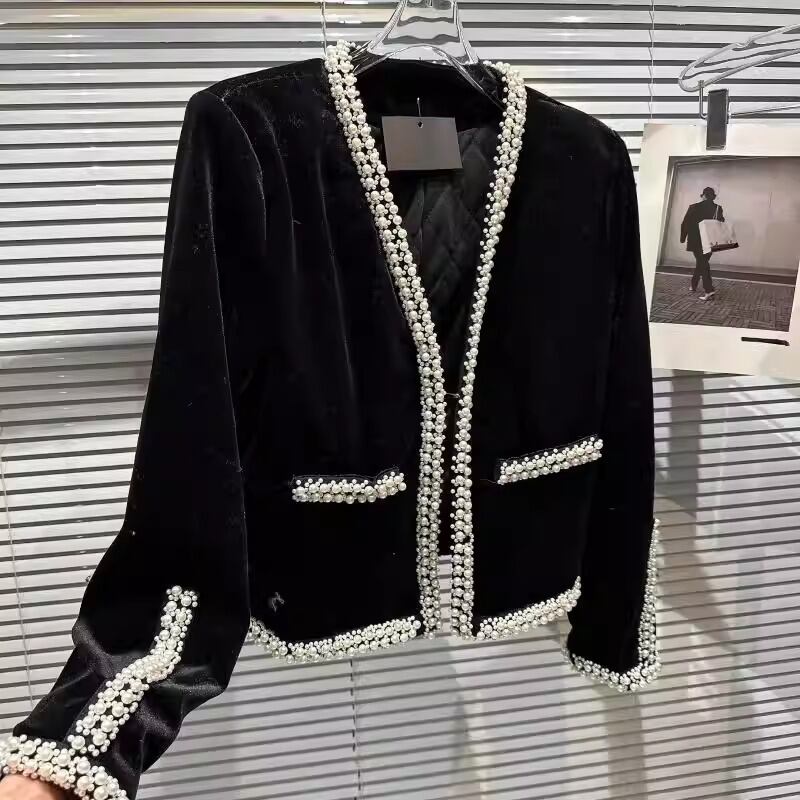 パールトリム ベルベット ショート ジャケット ★1916★