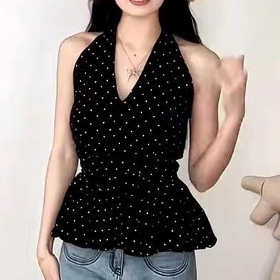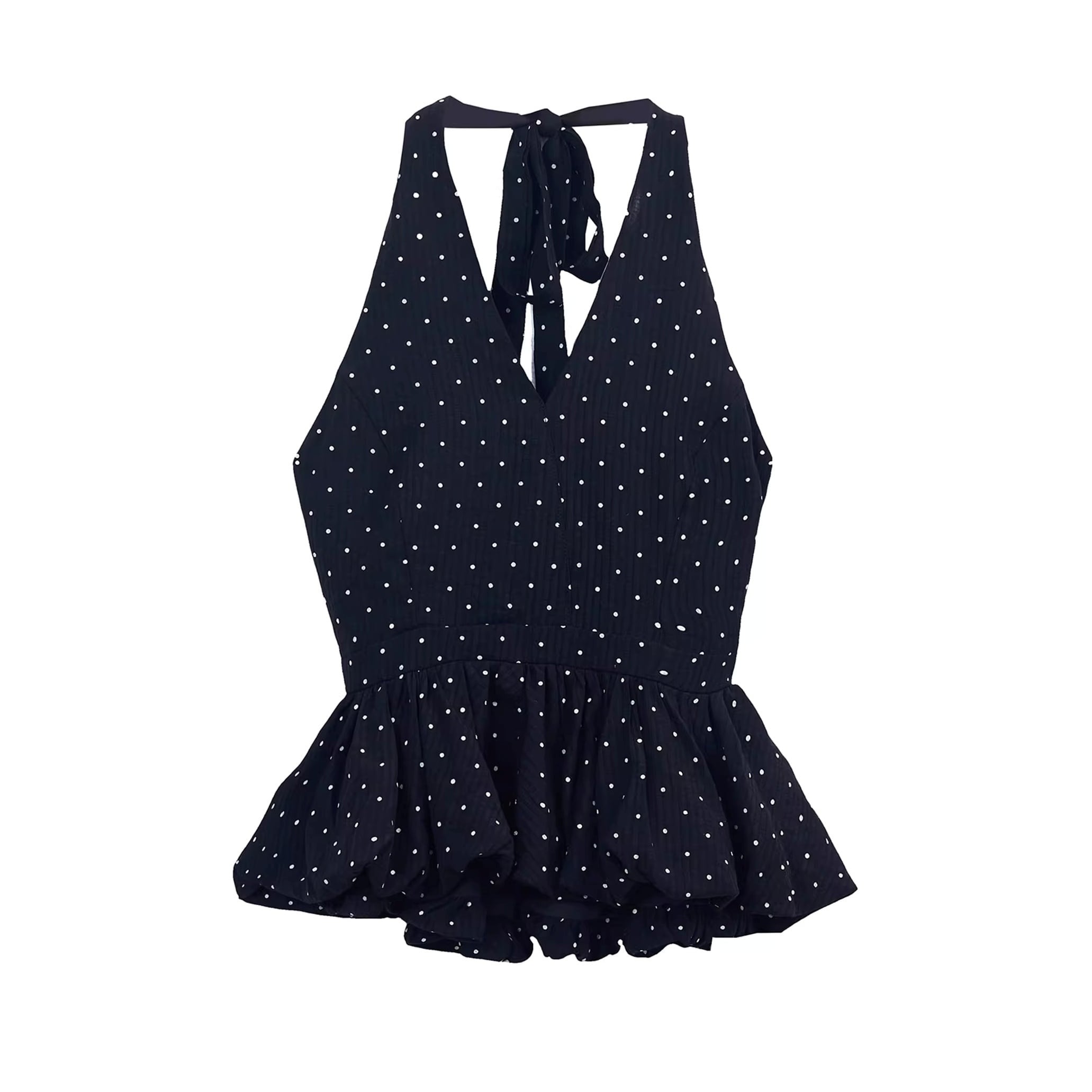 レトロドット ホルターネック ペプラムトップス ★1924★