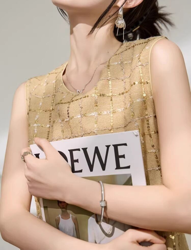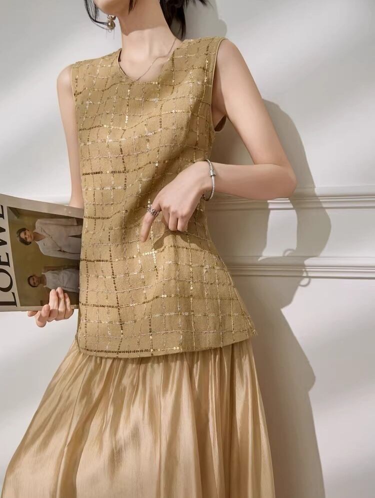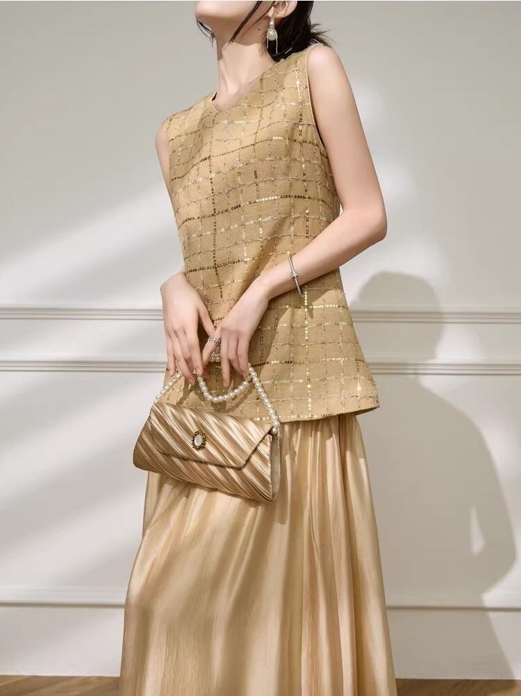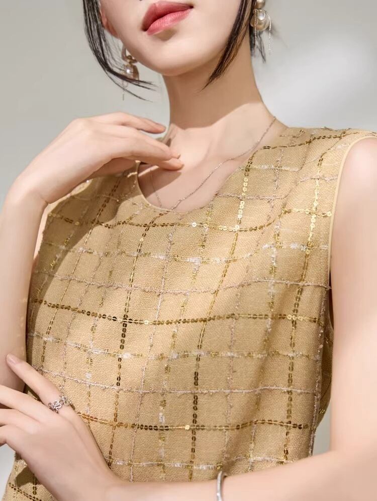 ノースリーブ ツイード ドッキング ロング ワンピース ★1929★