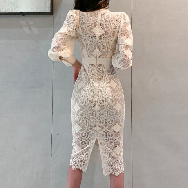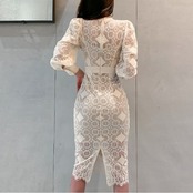 ダイヤ柄レース スタンドカラー ワンピース★268★