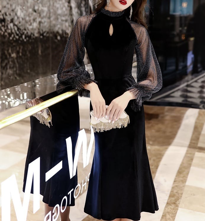 シアー バルーンスリーブ マーメイドワンピース★304★