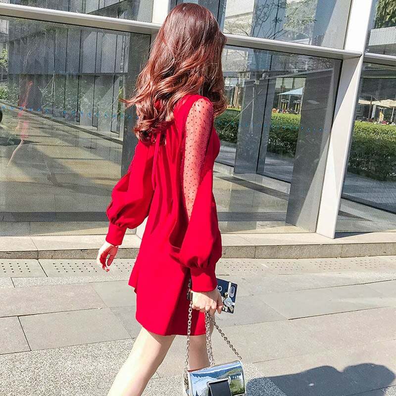 バックリボン オーガンジー スリーブ ワンピース ★486★