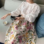 ぱっと華やぐコーデが完成するるフラワーパターンのロングスカート