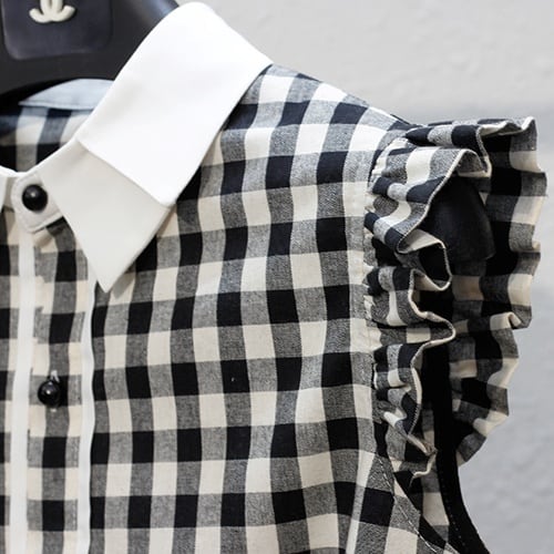 ギンガムチェック フリルノ ースリーブ ブラウス ★660★