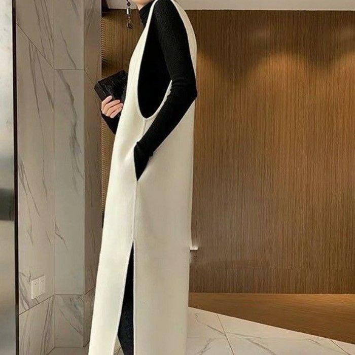 フリース スリット Vネック スリーブレス ワンピース ★788★