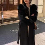 ウール フォックスファー フード ロング ガウン コート ★1015★