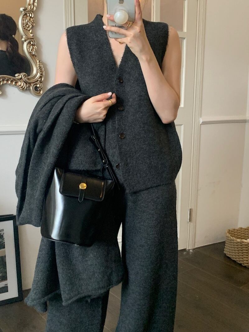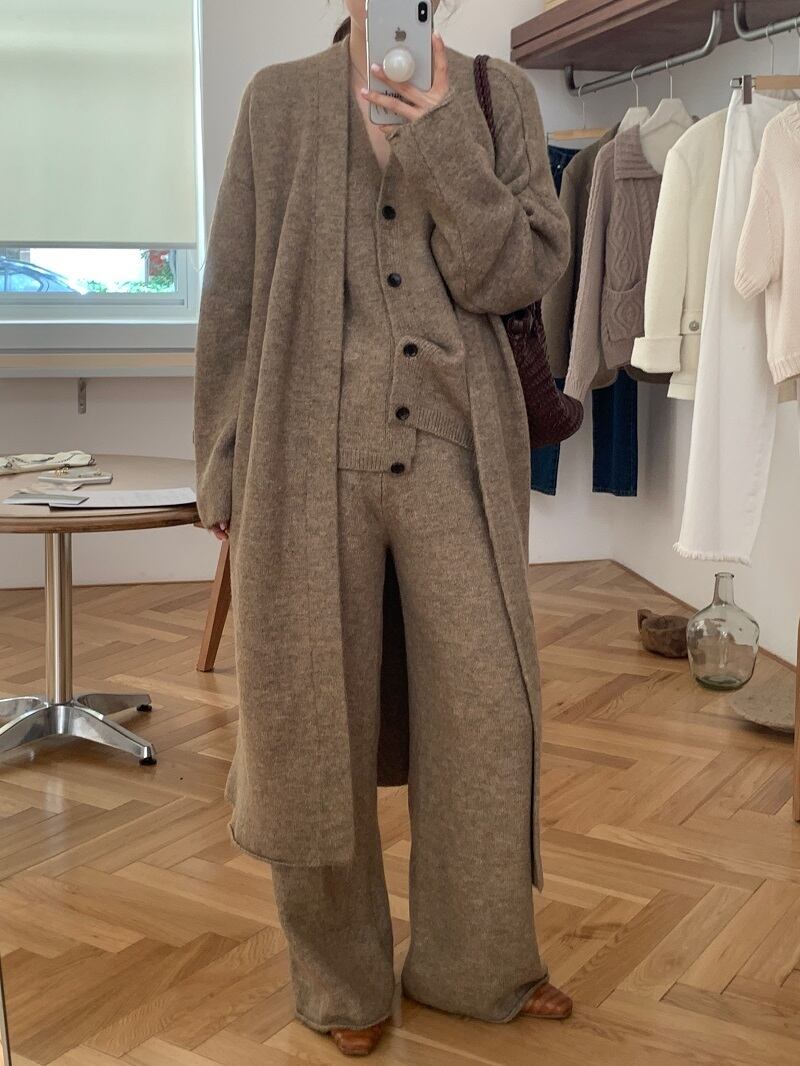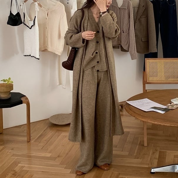 ロングニットカーデ× ニットパンツ × ベスト セットアップ ★1033★