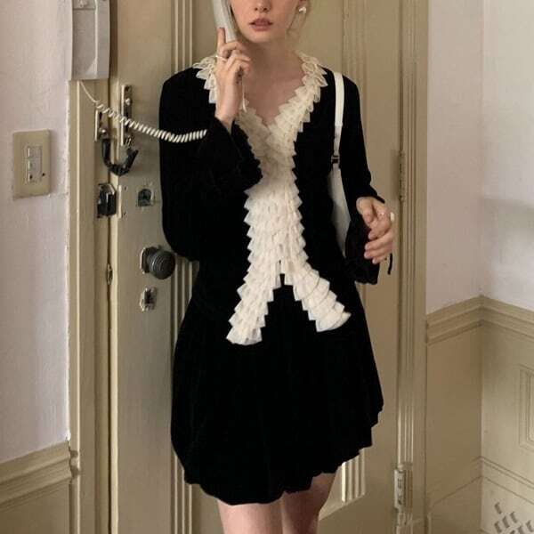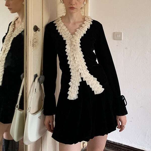 フリル パイピング ベルベット カーディガン ★1060★