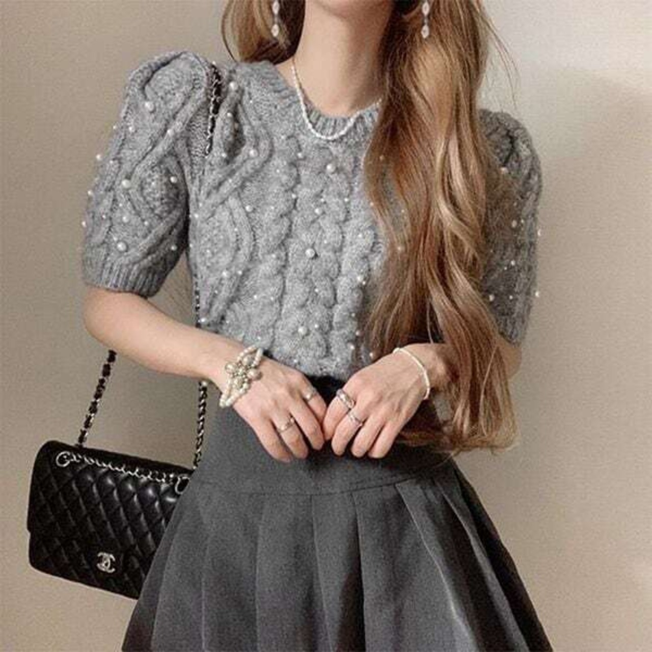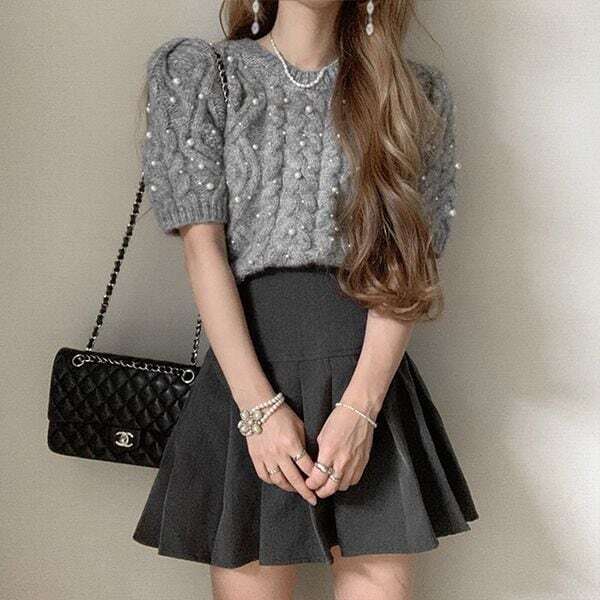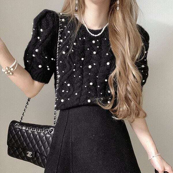 パール ケーブル パフスリーブ ニット プルオーバー ★1126★