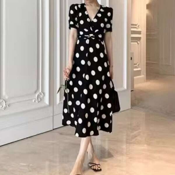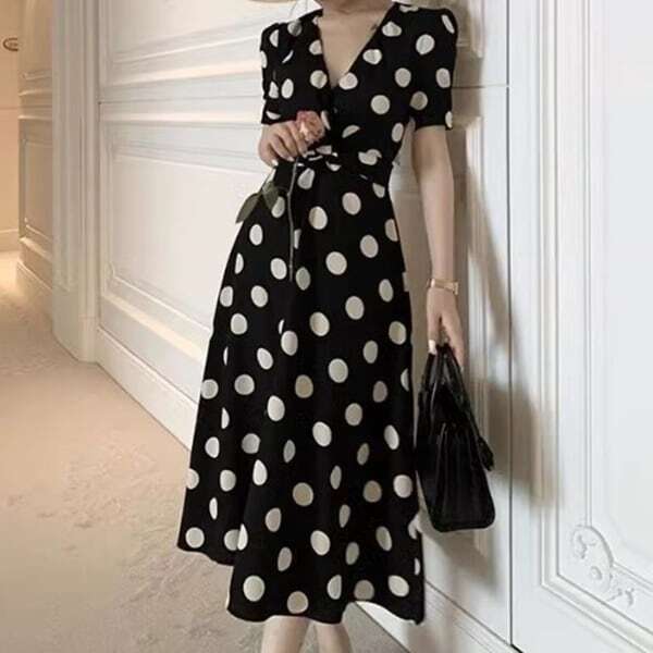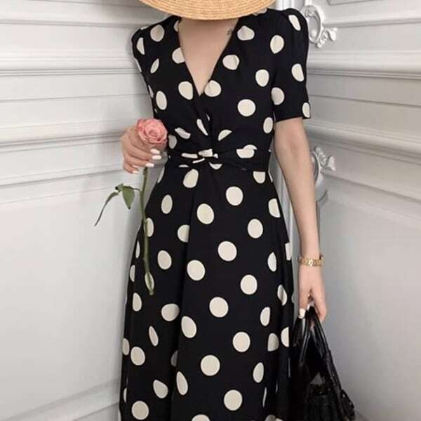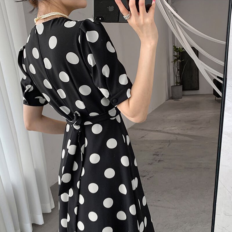Vネック 水玉 ドット ワンピース ★1149★