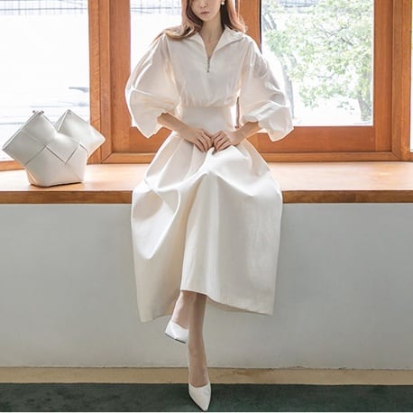 ボリュームスリーブ ハイウエスト ワンピース ★1173★
