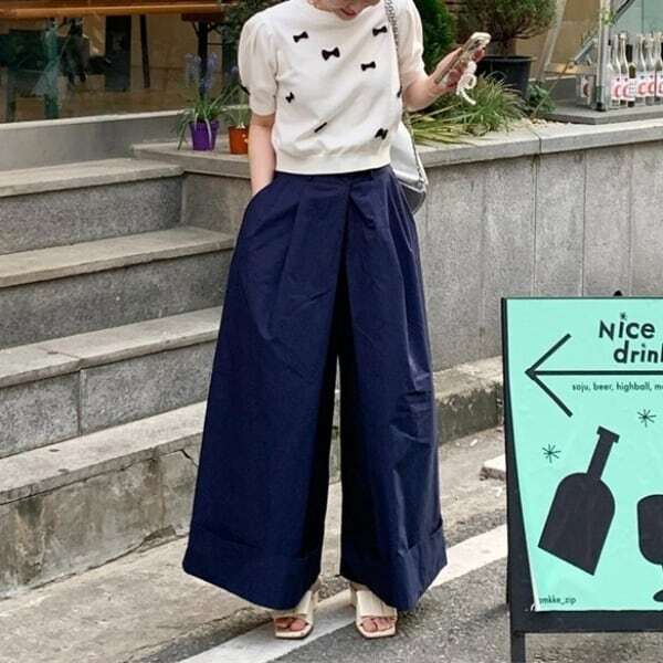 パフスリーブ 半袖 リボン ニットソー ★1271★