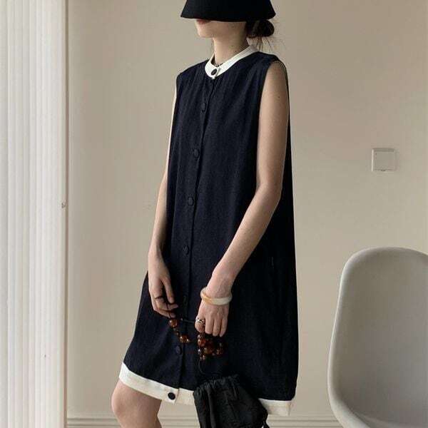 バンドカラー デニム ライク ミニワンピース ★1286★
