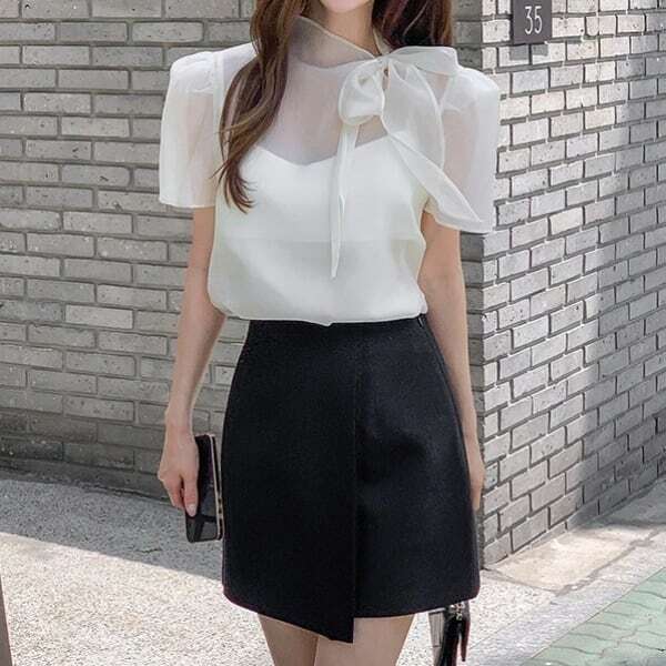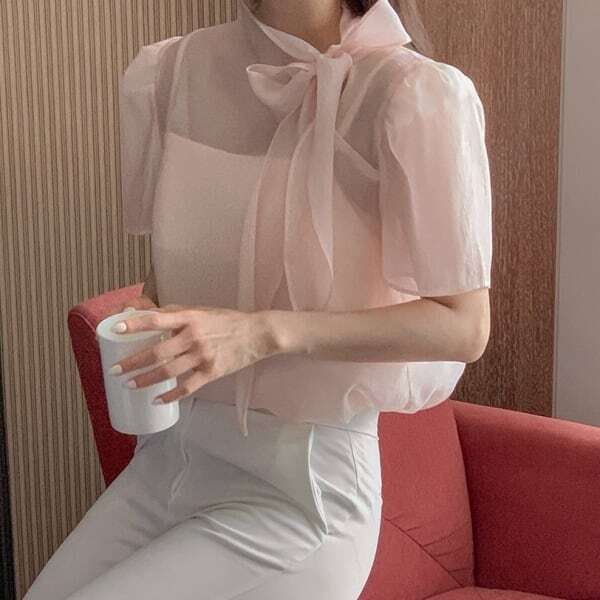 シアー ボウタイ リボン シフォン ブラウス ★1361★
