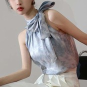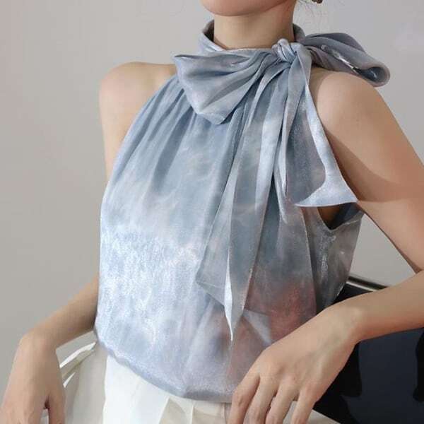 ホルターネック ノースリーブ ボウタイリボン ブラウス ★1363★