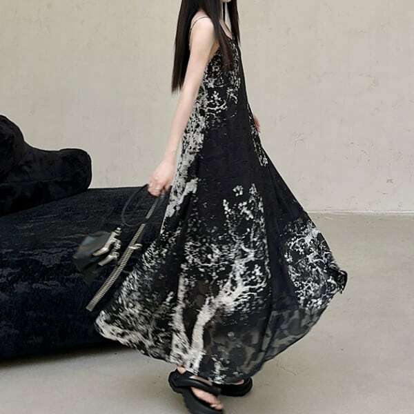 チュール キャミソール プリント ロング ワンピース ★1365★