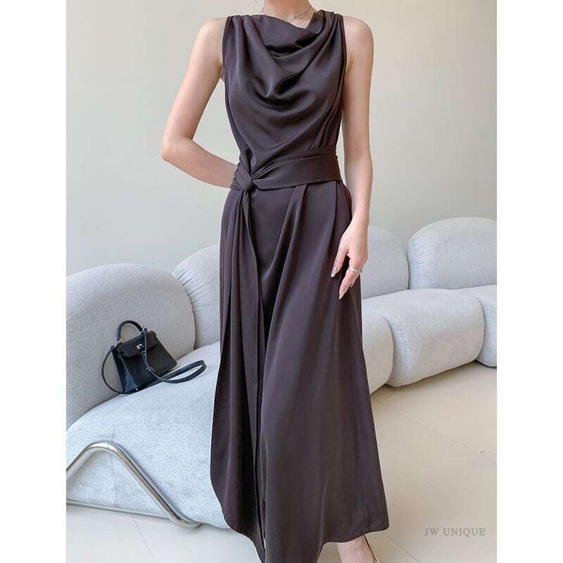 ウエスト タイ ドレープ マキシ ワンピース ★1382★