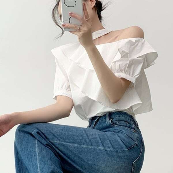 ハーフスリーブ ワンショルダー フリル ブラウス ★1390★