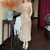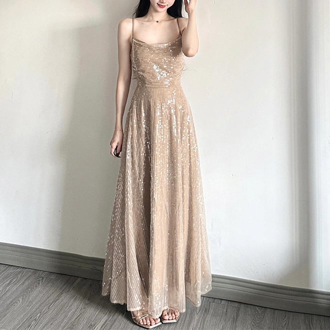 スパンコール キャミソール ロング ドレス ワンピース ★1407★