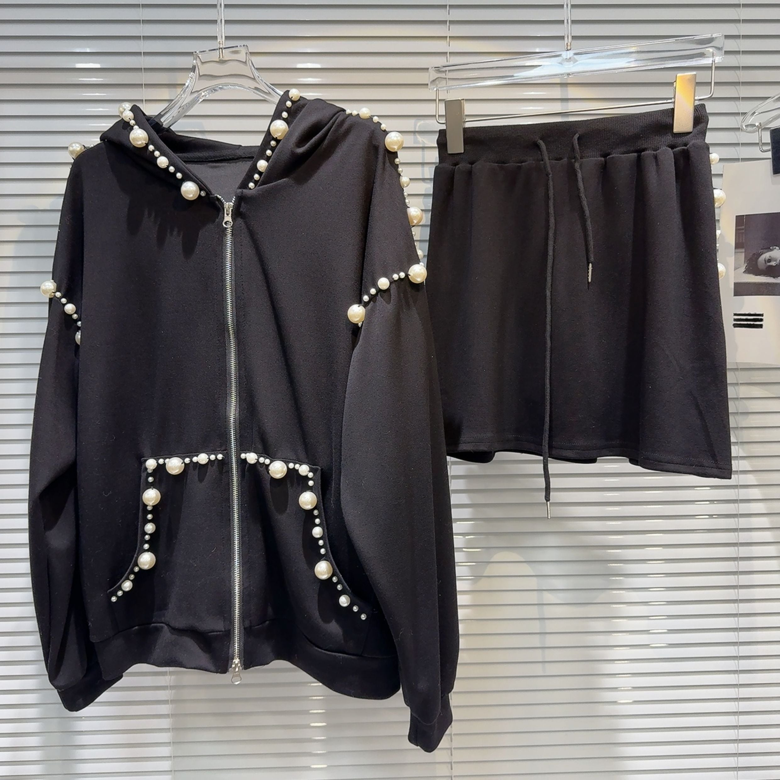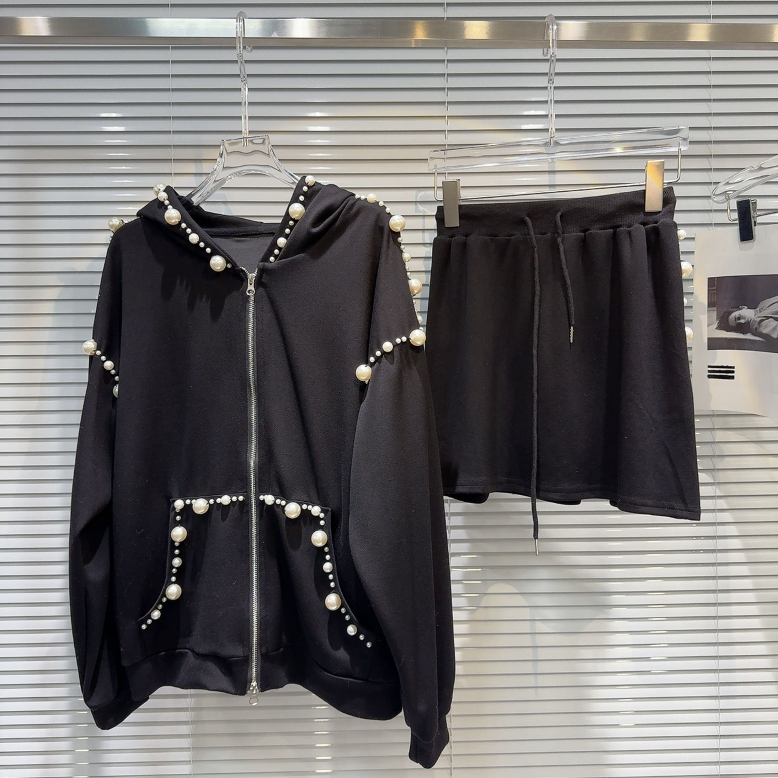 【セットアップ商品】パール デザイン スウェット パーカー & ショートパンツ ★1633★